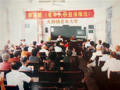1998年,干學(xué)斌從教學(xué)崗位退下。2001,他被推舉為大荊鎮(zhèn)老年協(xié)會副會長,負(fù)責(zé)宣教工作。走馬上任后,他做了一件別人想都想不到的事——創(chuàng)辦大荊鎮(zhèn)老年學(xué)堂。